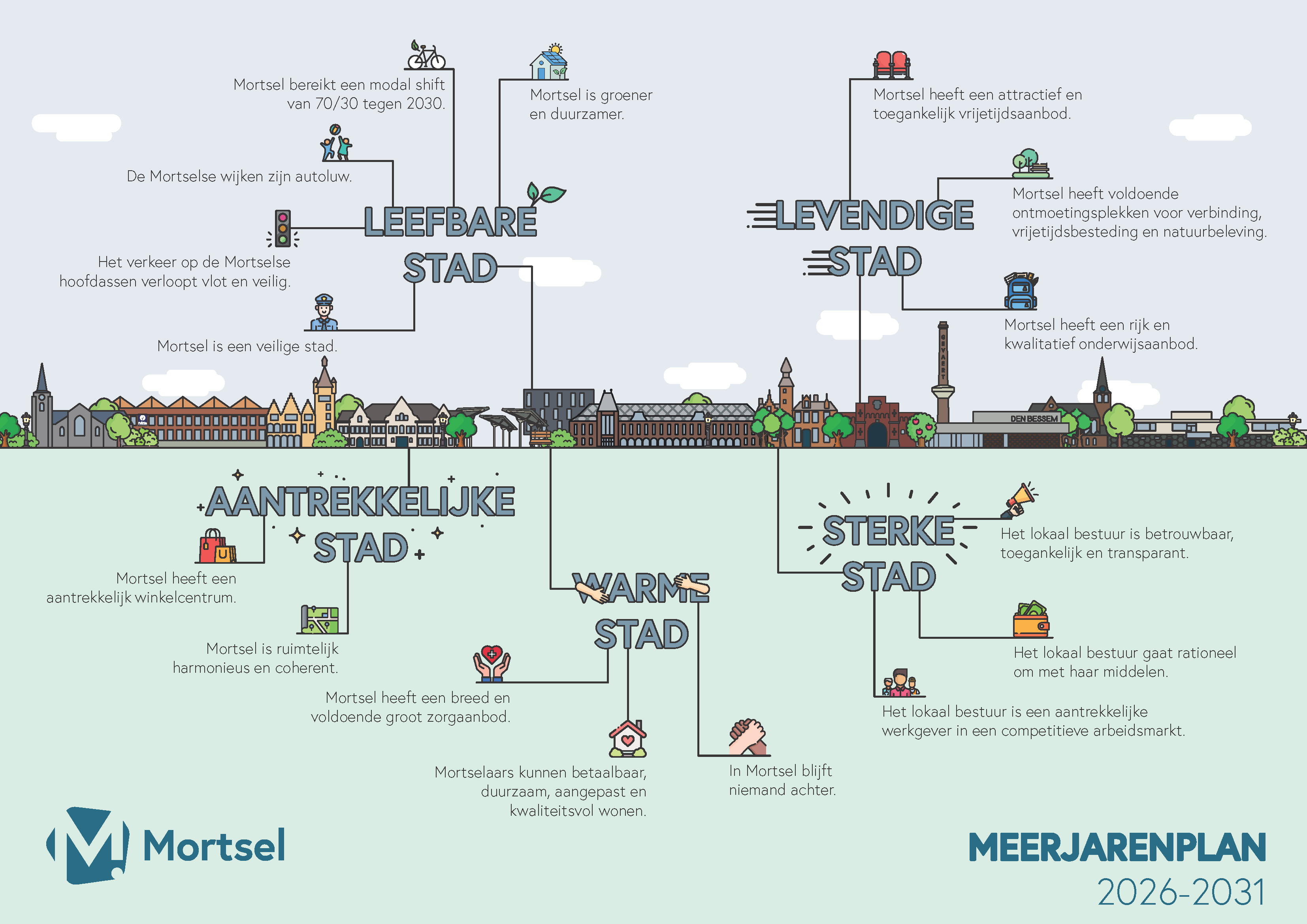 Mortsel staat op een kruispunt. De keuzes die we vandaag maken, bepalen hoe onze stad morgen leeft en groeit — niet alleen in bakstenen en cijfers, maar vooral in leefkwaliteit, verbondenheid en kansen voor iedereen.